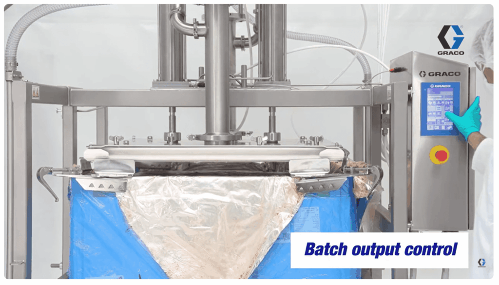 Graco bin systems are designed for high-viscosity materials that cannot be efficiently pumped using traditional methods. This includes peanut butter, frosting, creams, gels, lotions, tomato paste, syrups, heavy sauces, pharmaceutical ointments, and other products with extremely thick consistencies. The inflatable wiper plate allows these materials to be recovered cleanly with minimal waste.